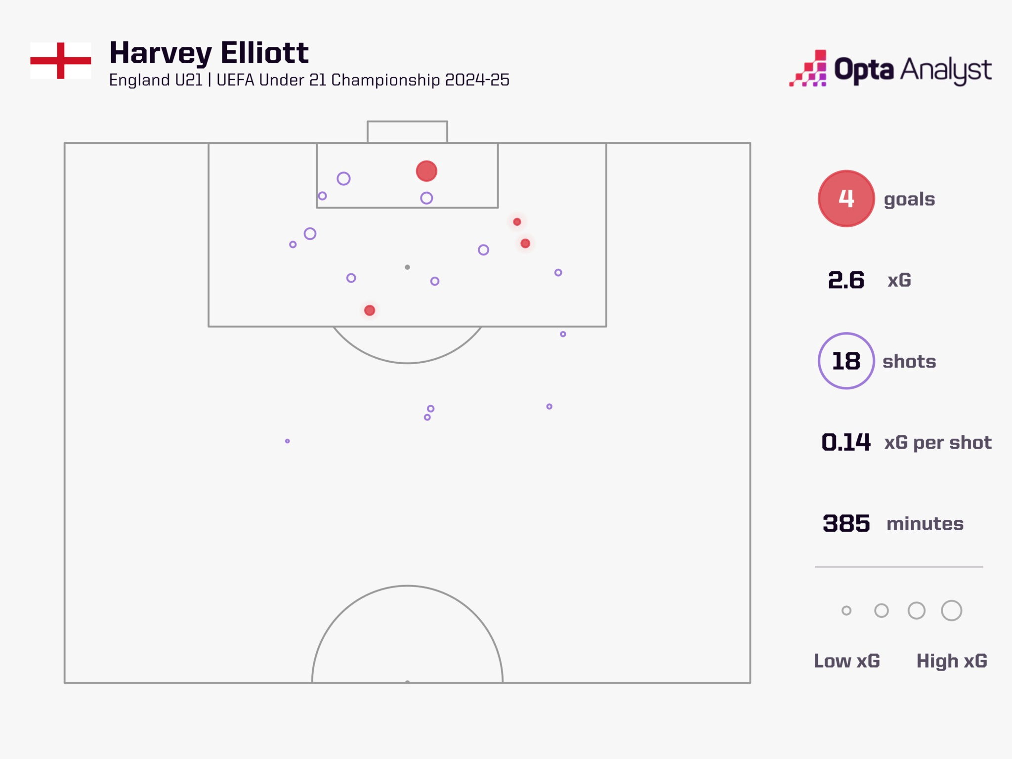 埃利奥特目前在U21国家队的进球数已达到13个,追平阿兰-希勒与杰弗斯,仅次于赛事历史最佳射手恩凯蒂亚(16球)。