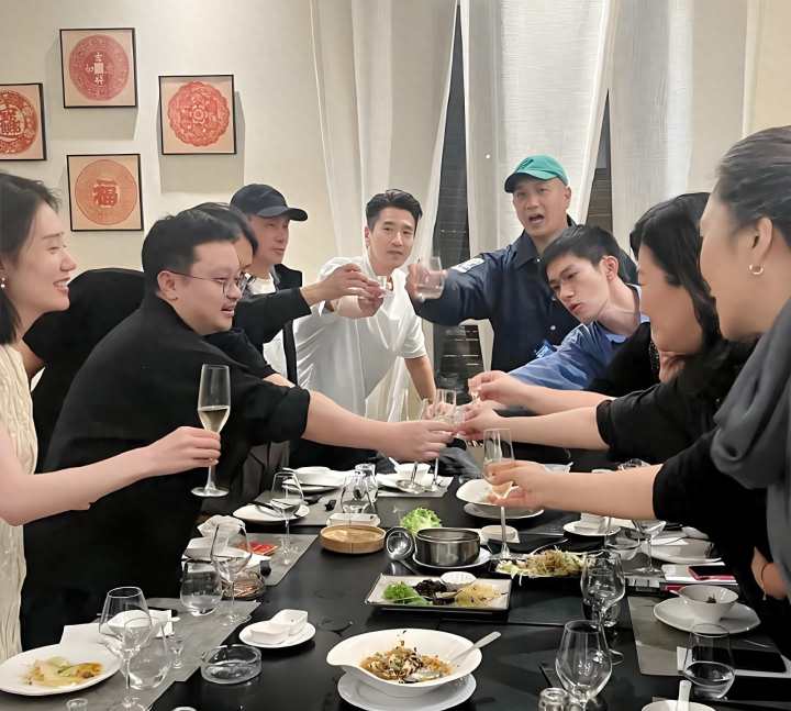 此前公开场合他手持香槟也是安静小酌。然而这次庆功宴上的白酒碰杯,主动畅饮,无疑展露了私下自信又接地气的一面——原来戏外也能如此“大开大合”!